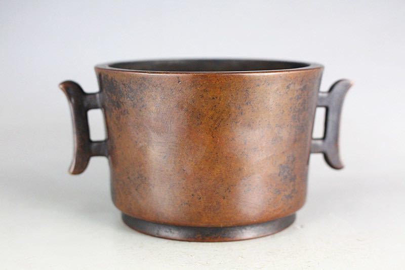 - 蔵出し極美古銅香炉 質感 細工在銘戟耳銅香炉 シンプル高級感 時代感 焼香で心が癒す 幸せな日々に 縁起物