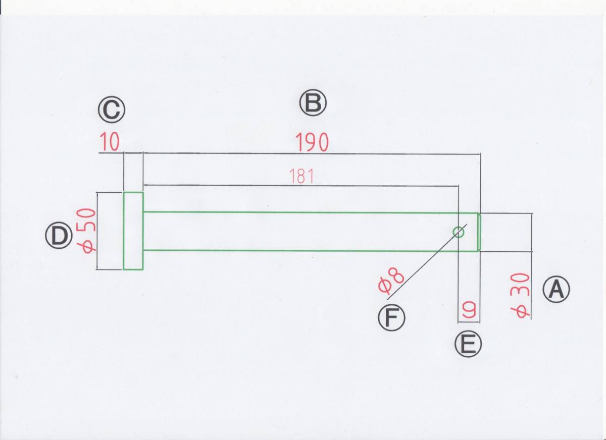 - NO1522 φ30用 ツバ下190mm バケットピン 1本