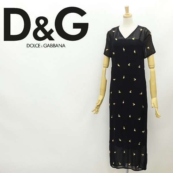 - ●D&G ドルチェ&ガッバーナ 花モチーフ 装飾 シースルー ドレス ワンピース 黒 ブラック 38
