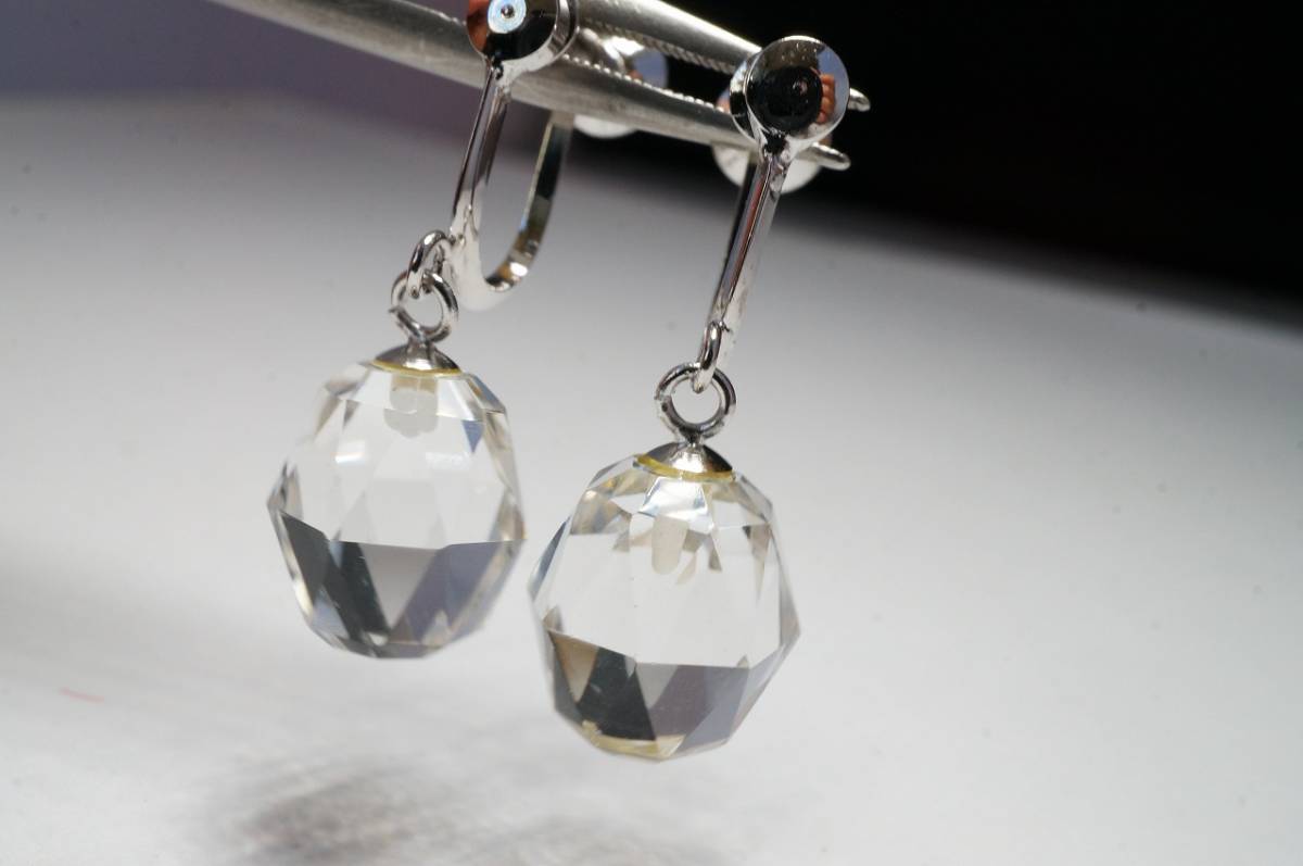 - 【特別即決価格!早い者勝ち!】極上天然水晶オリジナルカット高透明度イヤリング(ペア)3.6g