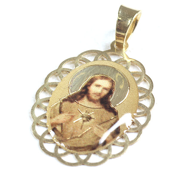 - K18YG イエスキリスト ペンダントトップ メダイ 0.7g 楕円 750YG/レジン 縁飾り 未使用品