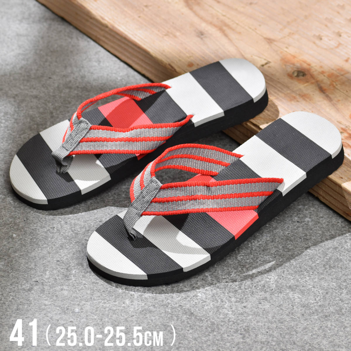 - ビーチサンダル 41 メンズ サンダル トングサンダル 夏 鼻緒 グレーレッド