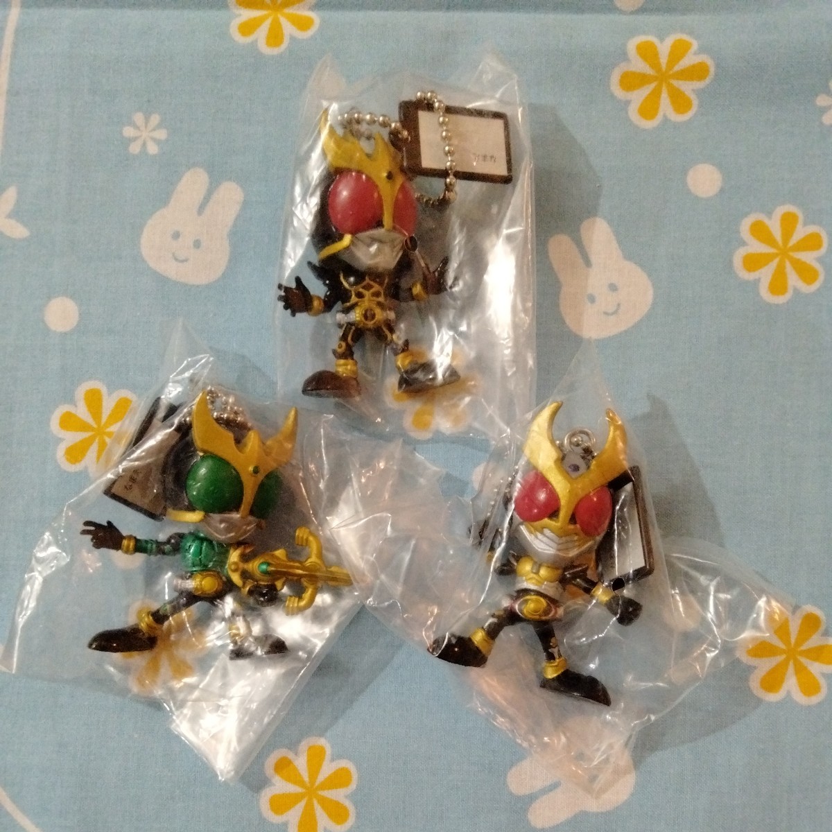 - 仮面ライダー クウガ フィギュア マスコット チャーム キーホルダー 黒 アルティメット 緑 ペガサス アギト 3種セット 未開封新品 当時もの