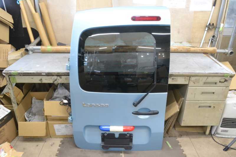 > カングー II 右ハンドル 前期(KWK4M) 純正 破損無 取付OK 左 リア バックドアパネル ハイマウント ランプ バックカメラ付 水色 k074244