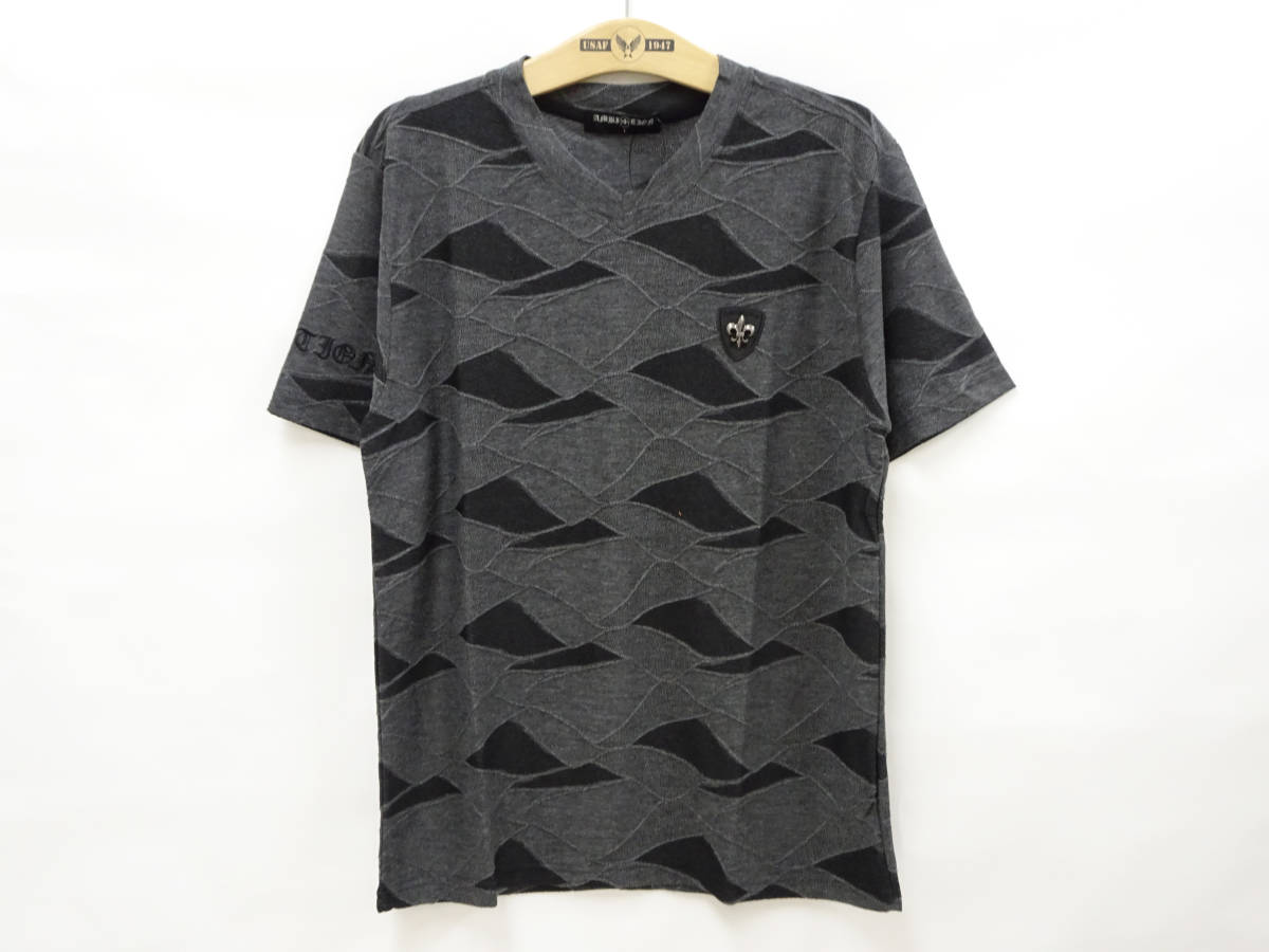 > ビーアンビション Tシャツ Vネック 半袖 PUワッペン&ロゴ刺繍 T20104 グレー (L) 多少汚れ 50%オフ(半額)・即決 送料無料 新品