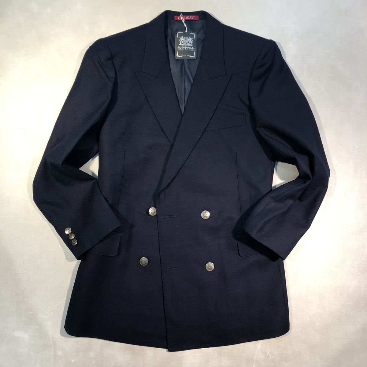 > 超激安★新品☆タグ付き高級KING.Gヴィンテージダブルジャケット サイズYA5 濃紺ネイビー 銀ボタン コンサバスタイル☆日本製
