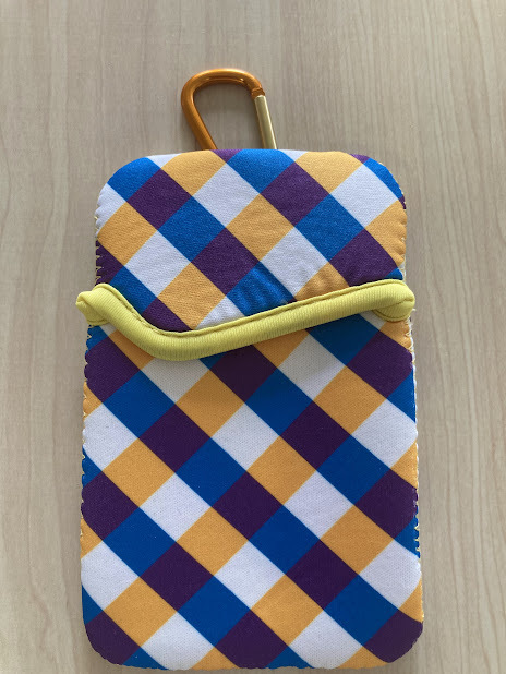 - 未使用 ミニポーチ チェック柄 BL&YE&WH 小物入れ ポケットポーチ カラビナ付き 新品