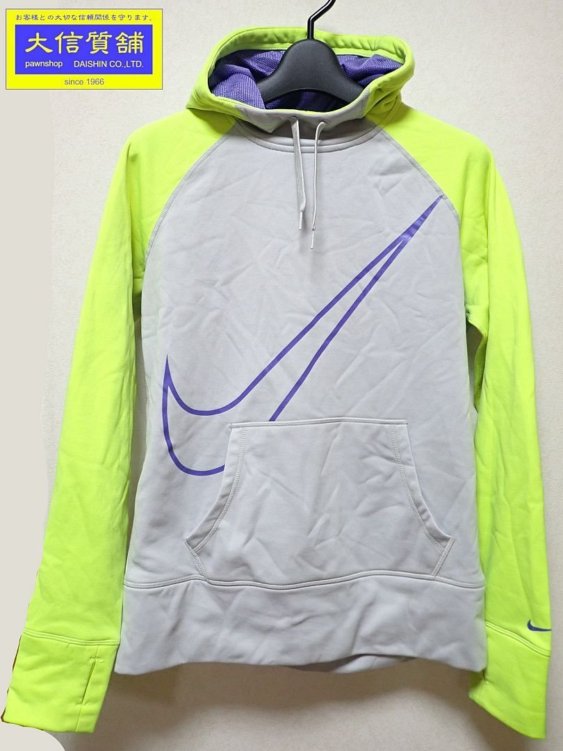 > NIKE THERMA FIT ナイキ メンズ プルオーバー フーディ M グレーxネオングリーン 中古B 【送料無料】 A-7924