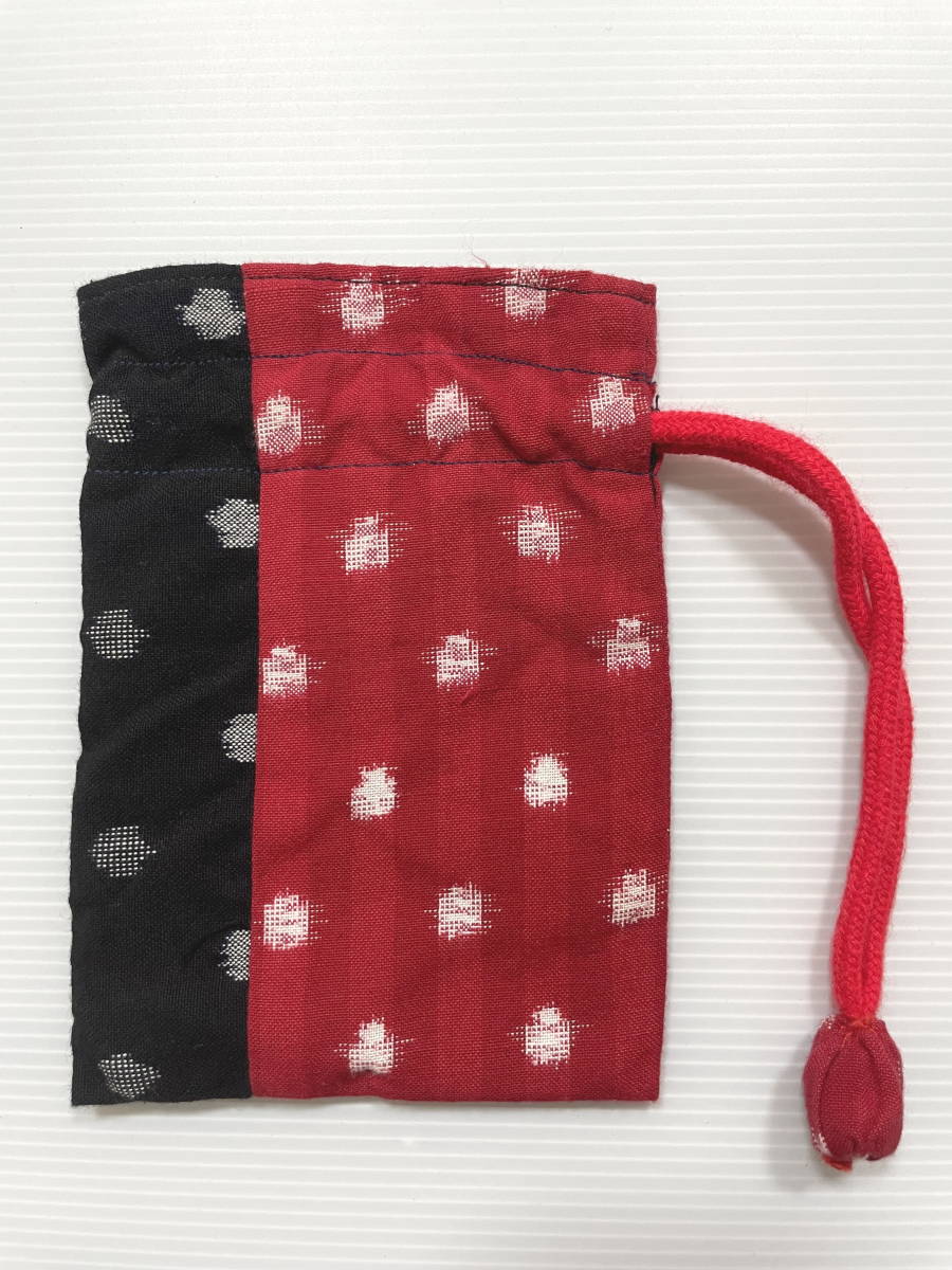 - 絣 古布 和柄 巾着袋 小物入れ ハンドメイド 和服 着物 石瀬5538