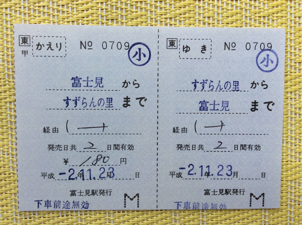- JR東 中央線 往復補充乗車券 すずらんの里ー富士見 富士見駅発行 平成2年