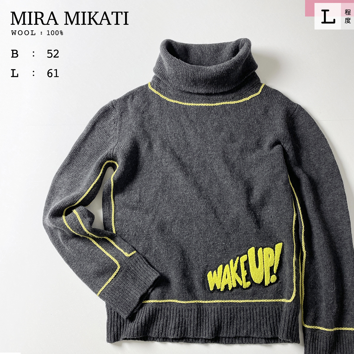 > Mira Mikati イタリア製 ウール 100% タートルネック ニット セーター チャコール グレー 刺繍 ハイネック ミラミカティ レディース L 11号