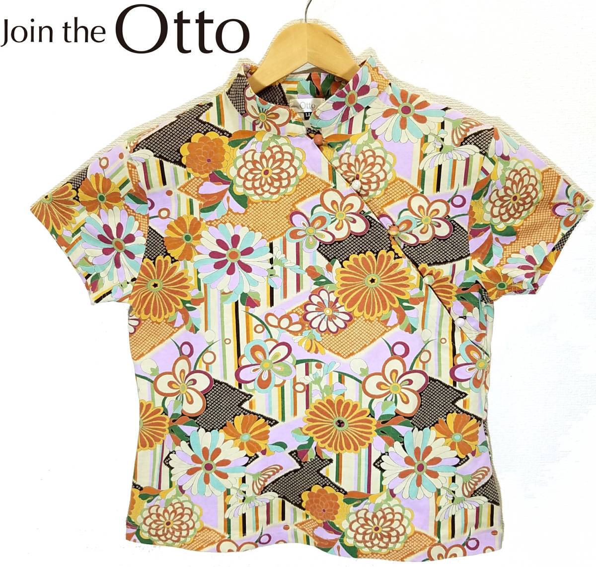 > SALE送料450円~(即決は送料無料)Otto総柄チャイナ服風LL花柄トップスXLレディース中国製ストレッチ素材アジアン衣裳マルチカラー2Lオットー