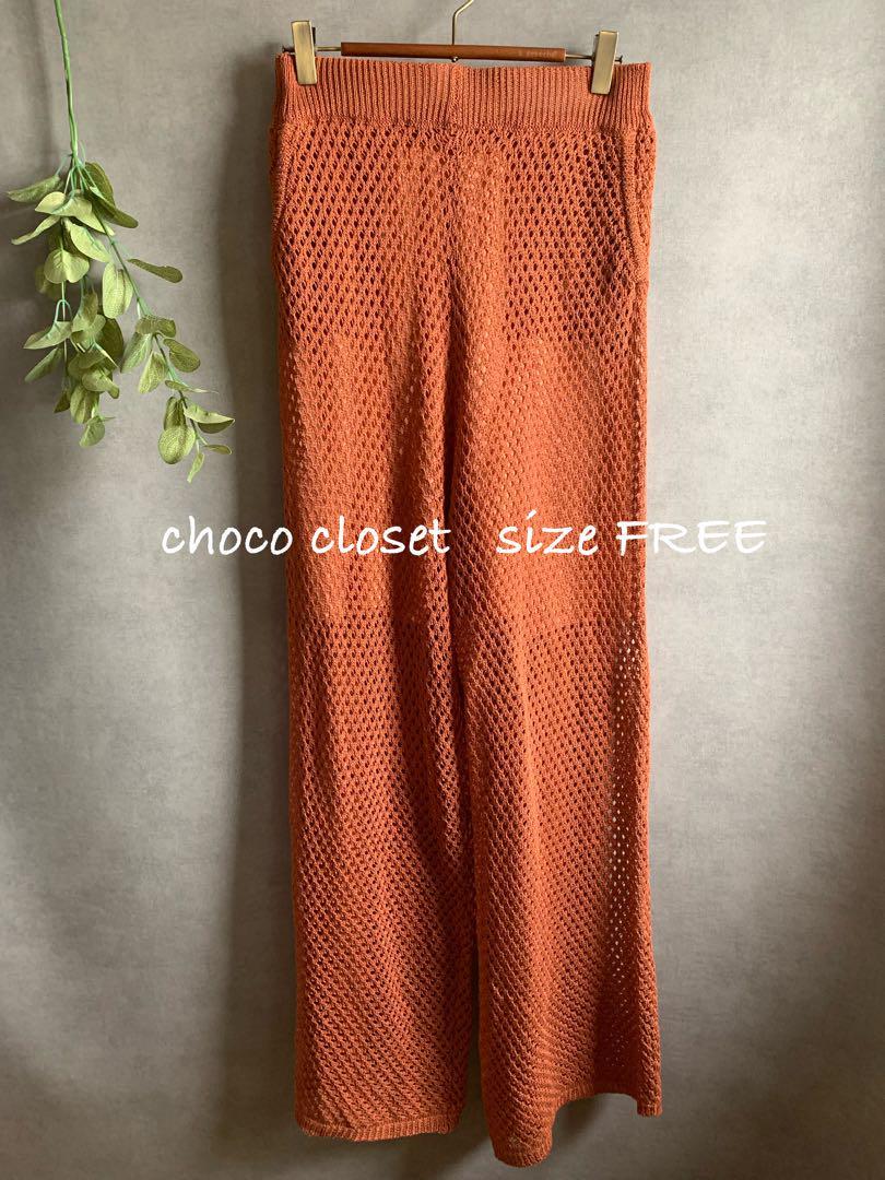 - chaco closet テラコッタ透かし編みパンツ メッシュ