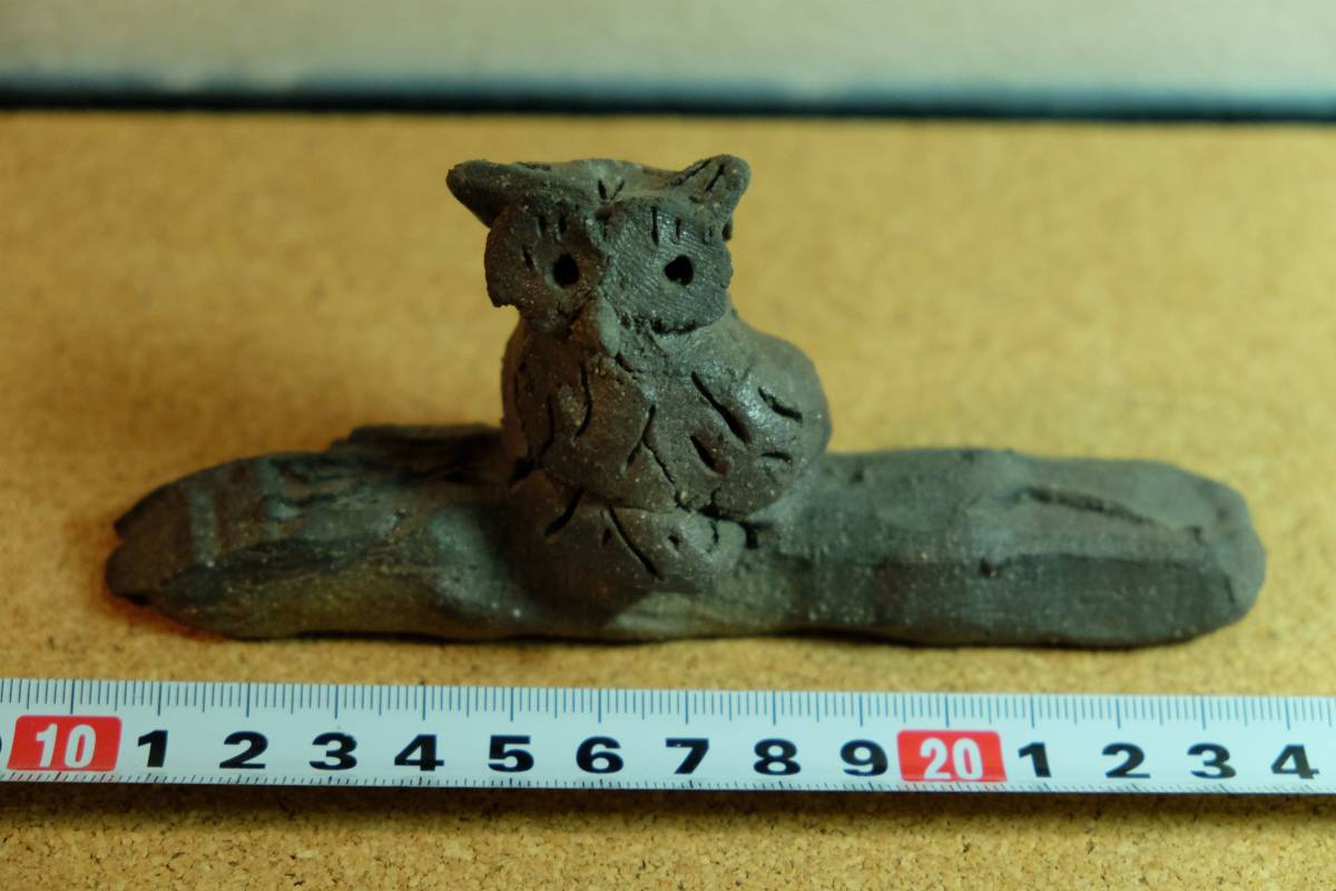 - 希少 ふくろう フクロウ 梟 置物 飾り 北海道 羊蹄自然の家 購入品 オブジェ みみずく ミミズク 羊蹄山 火山 溶岩 加工 彫刻 ☆0825~出340