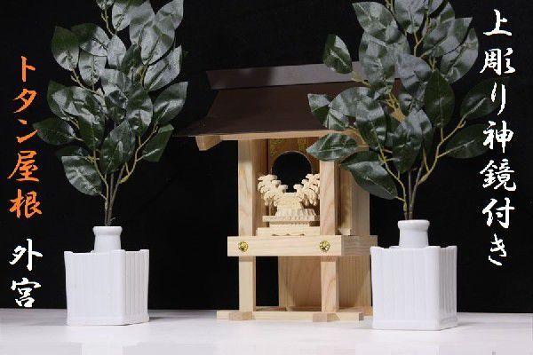 - 戸外 使用可■外宮(そとみや) 神棚 ■上彫り神鏡 特大榊セット