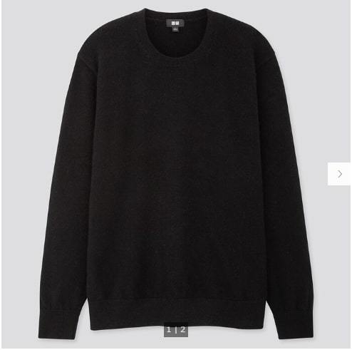 > § コットンカシミヤクルーネックセーター(長袖)★ユニクロU 黒 BLACK S ルメール 完売品