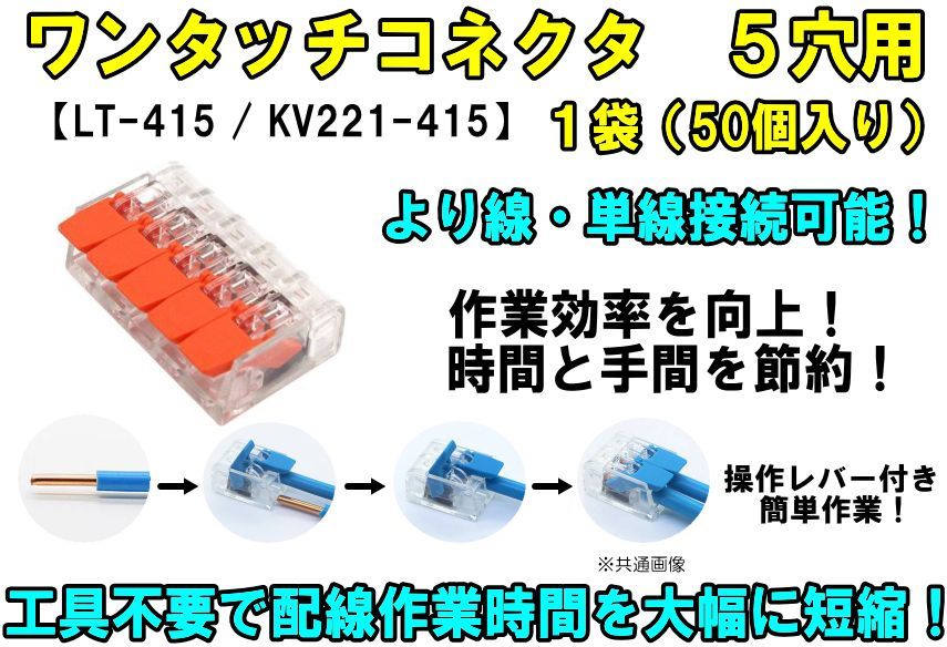 > ワンタッチコネクタ 5穴用 レバーワイヤーコネクタ 単線接続 より線 LT-415(KV221-415) 簡単 配線 電線 接続端子 クイック 高速 ①