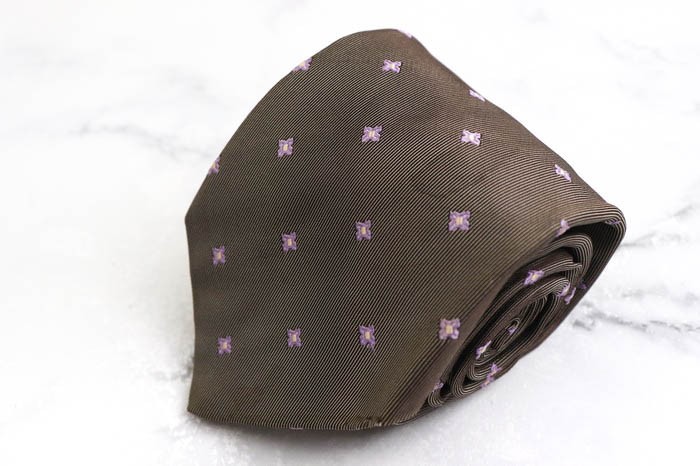 > フランコバッシ シルク 小紋柄 ミツミネ イタリア製 ブランド ネクタイ メンズ ブラウン FRANCO BASSI イタリア高級ネクタイブランド