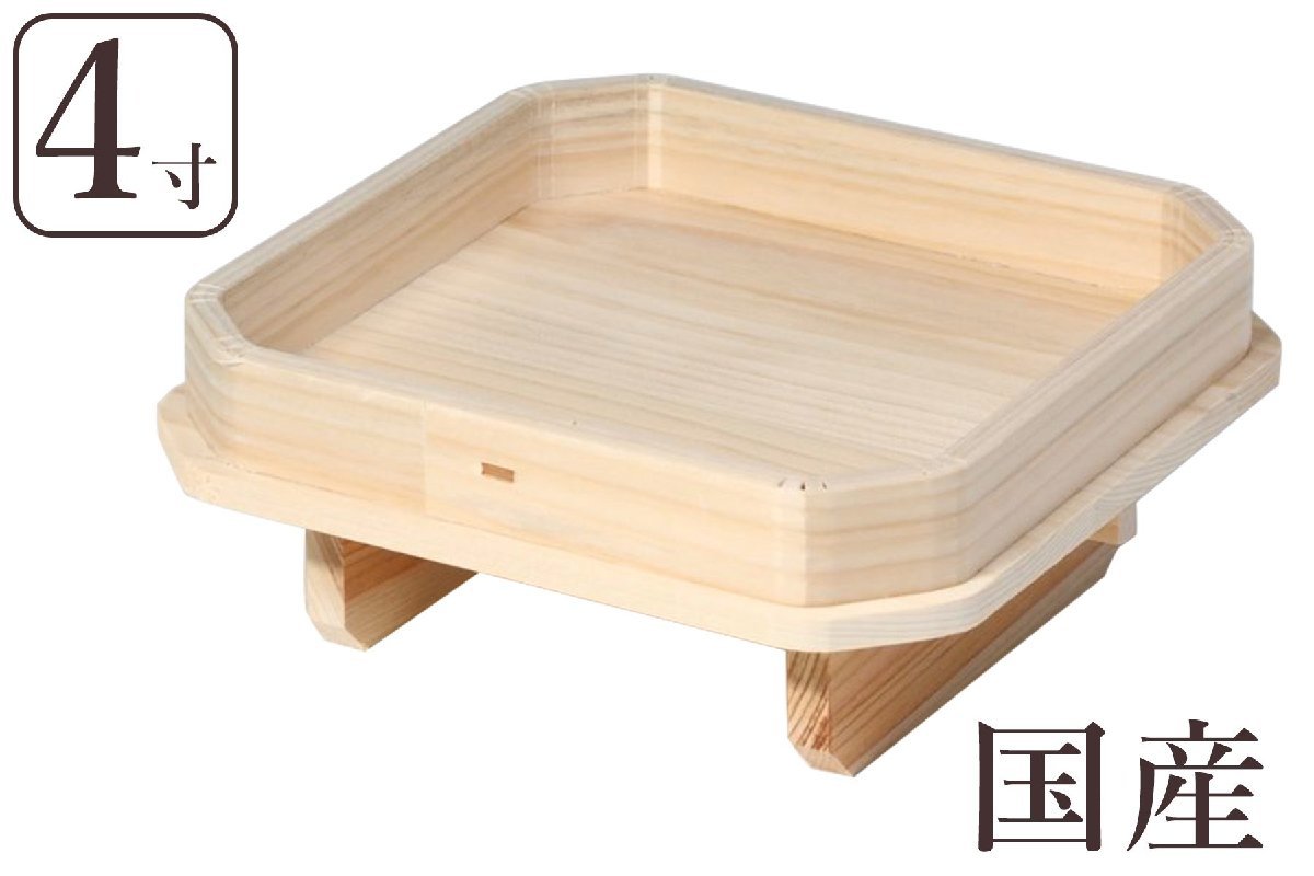 - 三宝 国産 ひのき 足打 4寸 神棚 神具 三方 高級桧 お月見