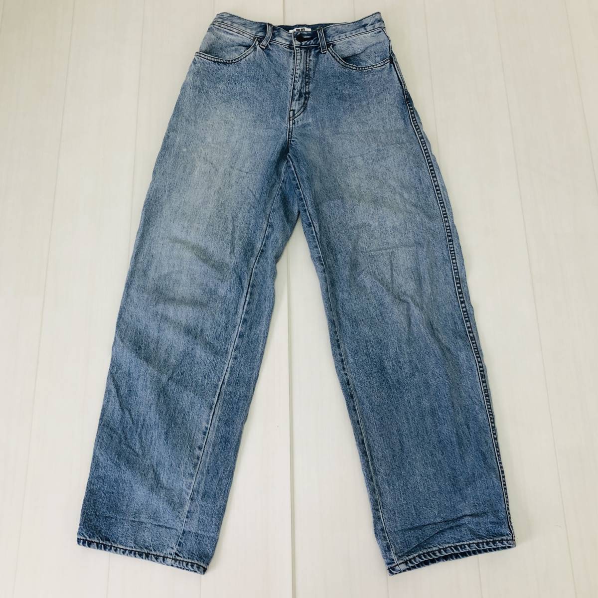 - k0567 良品 UNIQLO ユニクロ デニム ワイド パンツ 綿100% ポケット ストレート サイズ26 レディース おしゃれ カジュアルデニムコーデ