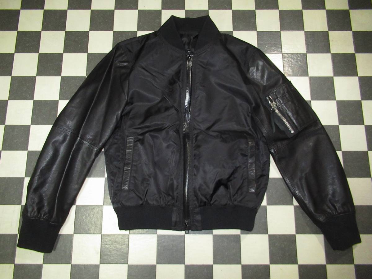 - ★COMME CA MEN/コムサメン★美品 M 黒 やぎ革袖 ナイロンMA-1 リブ付