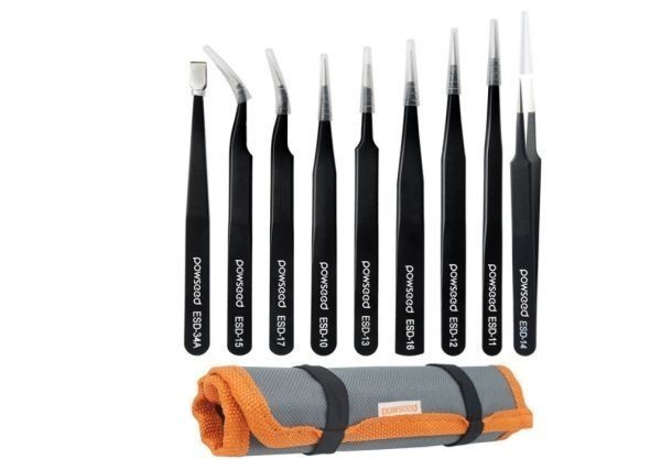 - 精密 ESD ピンセット 防磁 静電防止 9本セット ツイーザー エクステツイーザー (電解防錆黒色皮膜) 極細 黒 収納袋付 E248