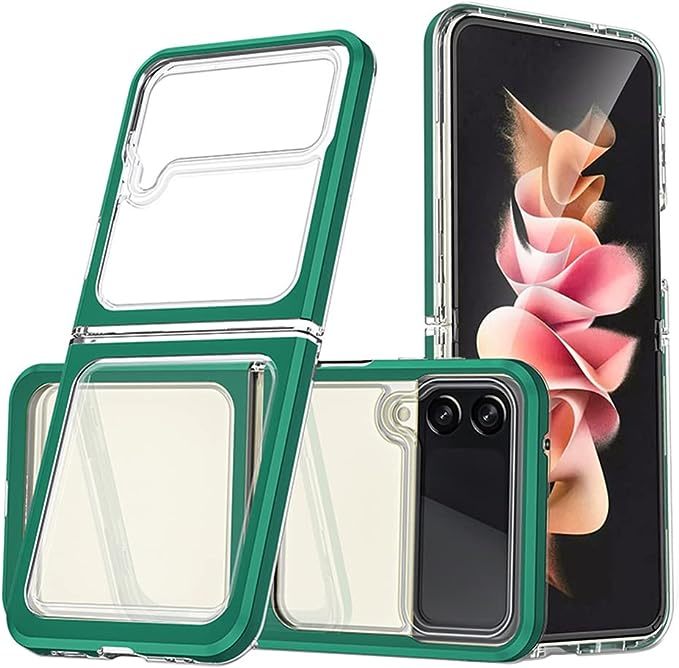 > Galaxy Z Flip3 5G 対応 ケース 落下防止 耐衝撃 SCG12 SC-54B カバー 滑り防止 カラーシリコンフレーム グリーン ①
