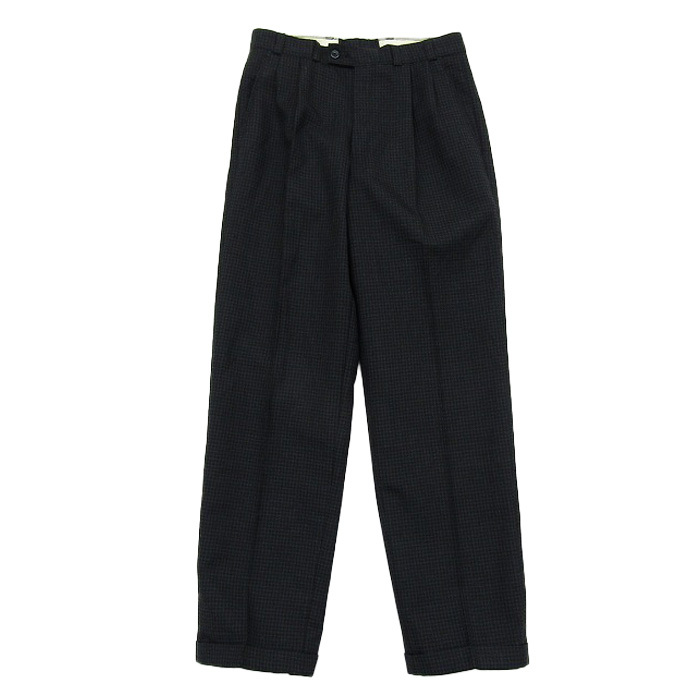 - 古着 ウール スラックスパンツ ツータック チェック ブラック サイズ表記:44 gd77127
