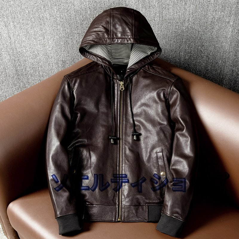 - 爆売り!羊革 レザージャケット コートフード付き 本革 革ジャン ジャンパー レトロジャケットコート ブラウン