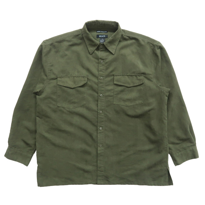 - 古着 フェイクスウェード 長袖 ボックスシャツ オリーブグリーン サイズ表記:XL gd38571