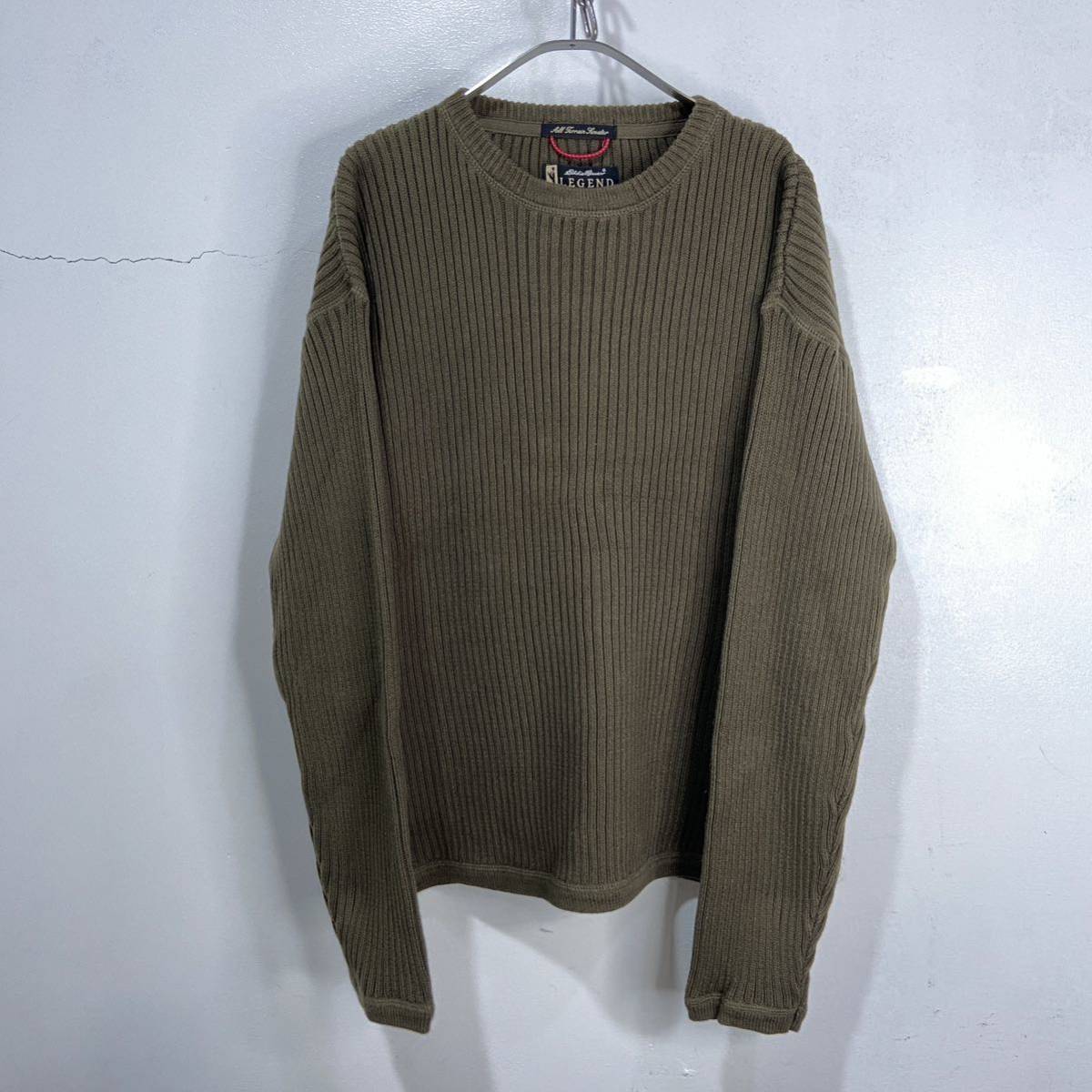- 送料無料☆Eddie bauer☆タグ付き未使用☆90s☆リブニットセーター☆L☆カーキ