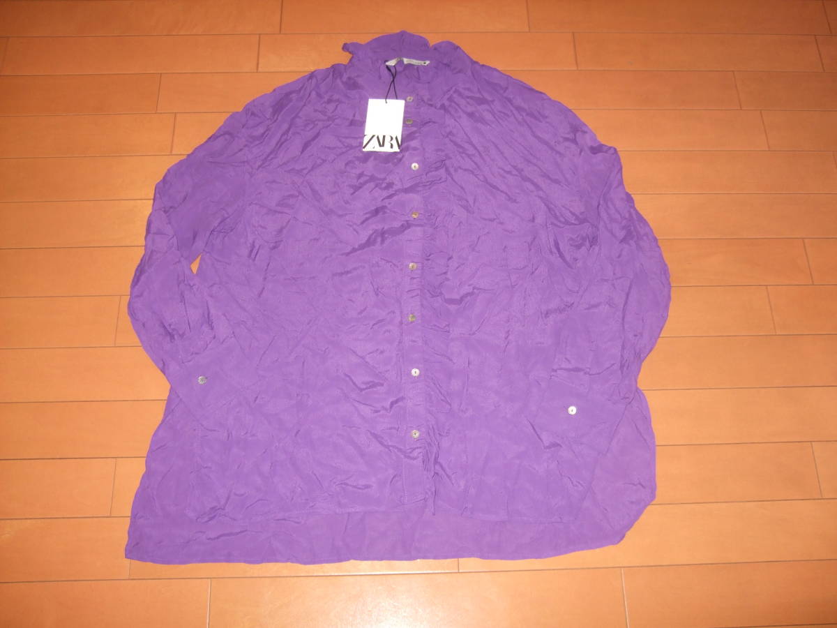 - 新品タグ付即決☆ZARA レーヨン素材フリルブラウス☆パープル M