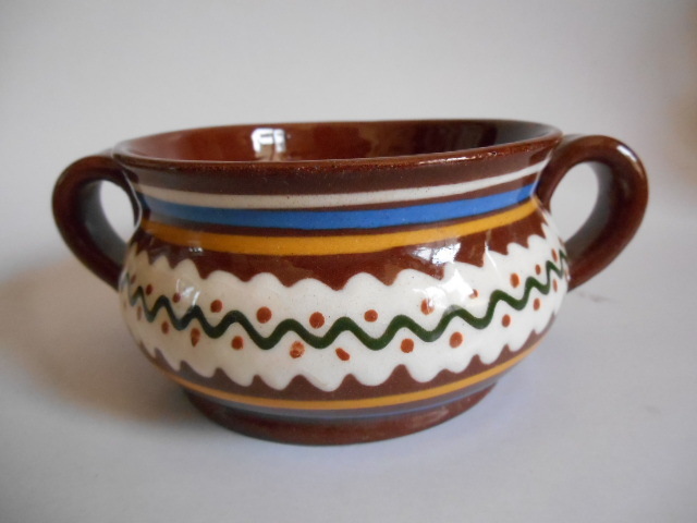 - ブルガリア トロヤン 焼き スープ シリアル 鉢 薄型 茶 白 0279
