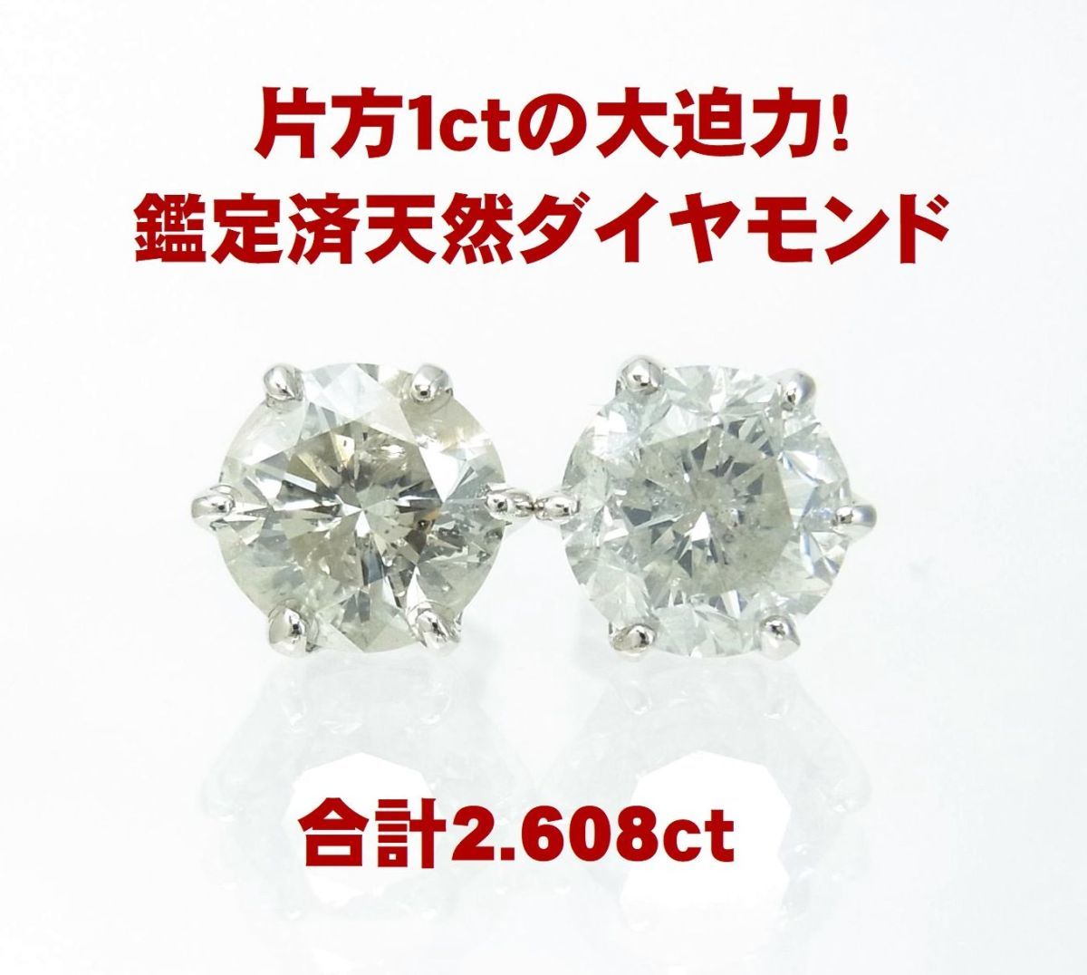 > 中央宝石研究所鑑定済 高コスパ 1.414ct 1.194ct 合計2.608ct天然ダイヤモンド一粒石ピアス プラチナ 商品動画