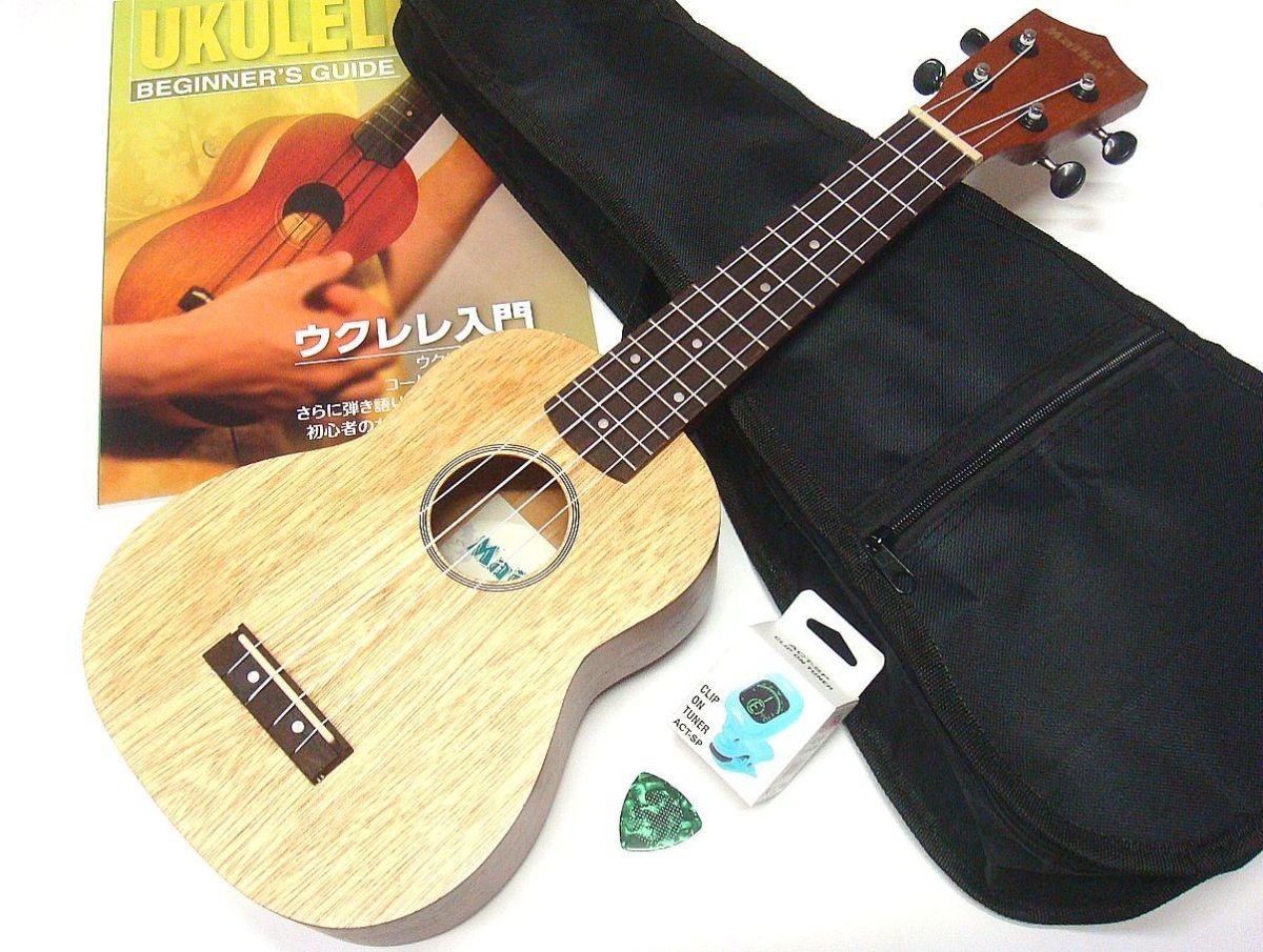- ウクレレ初心者セット Maikai MKU-1 N 5点セット ナチュラル DVD付き教則本 ケース チューナー ピック セット 送料無料 検品後発送で安心
