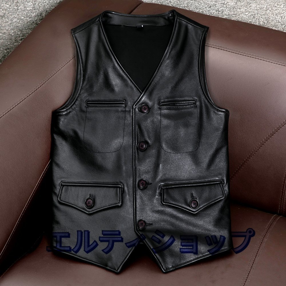 - レザーベスト 牛革 レザーライダース メンズファッション バイクベスト カウハイド 本革 カウベスト 革ジャン 機関車 S~4XL
