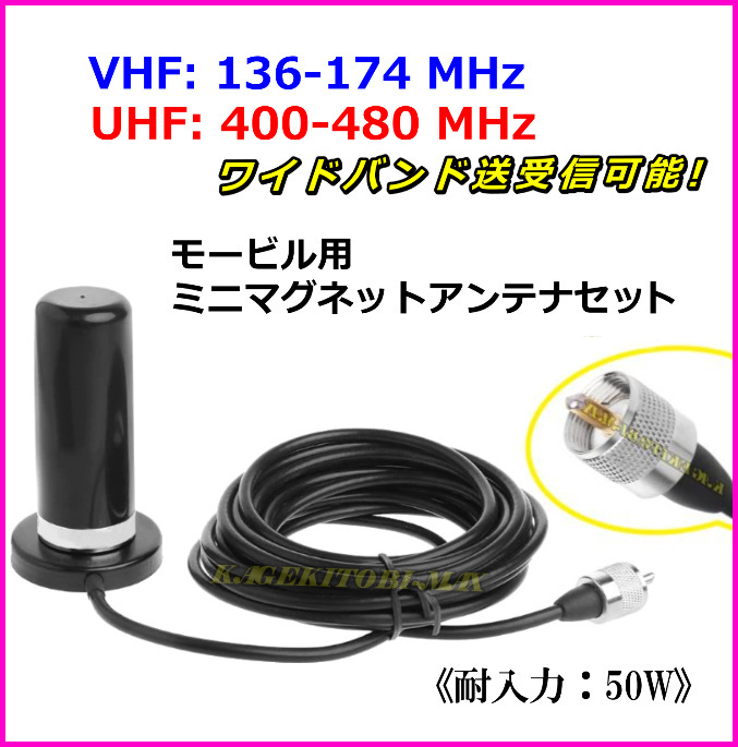 - V/U ワイド デュアルバンド 広帯域送受信対応 モービル ミニマグネットアンテナセット 新品 過激飛びMAX/車載 無線機 基台 同軸ケーブルに