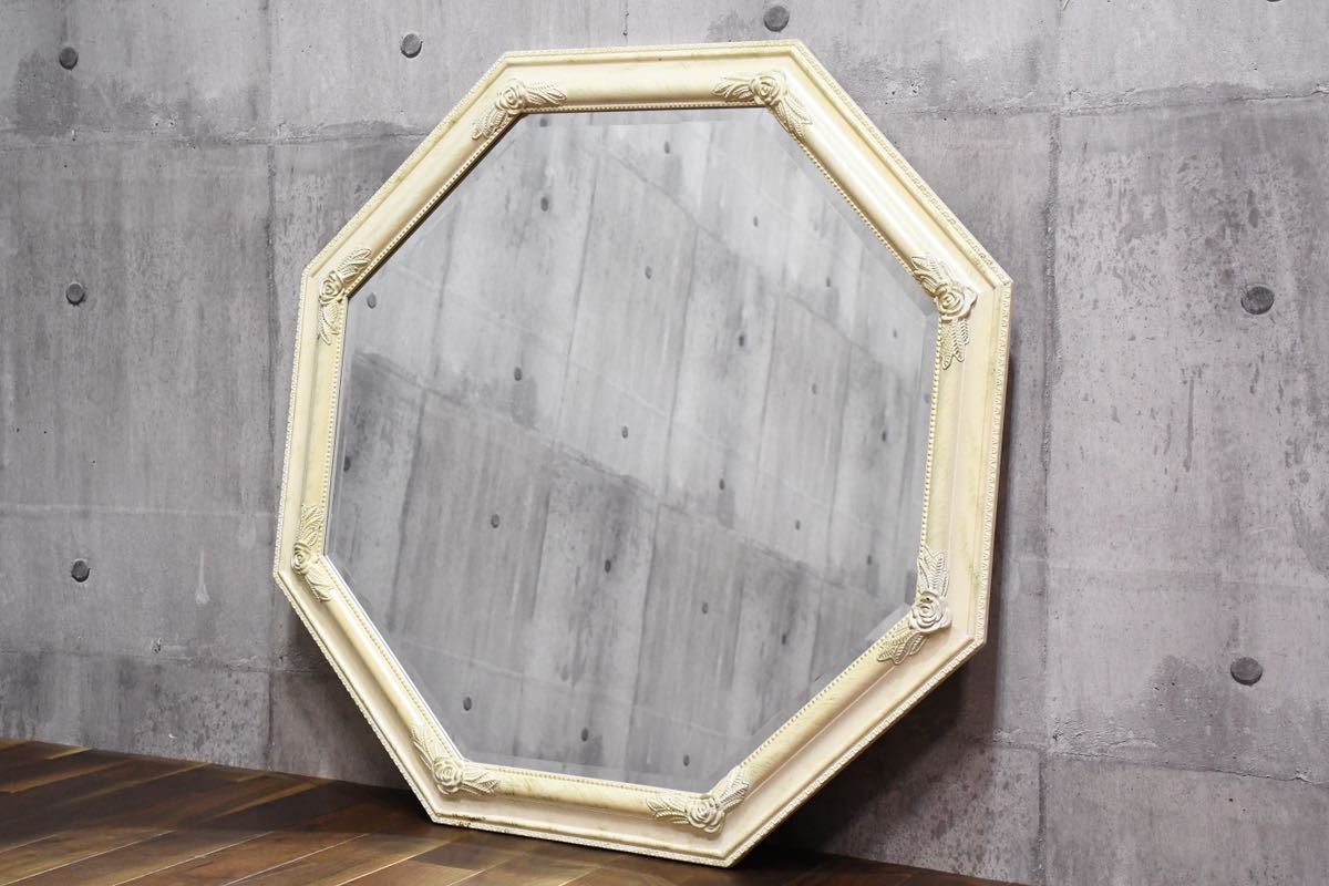 - CHC71 シャビーシック オクタゴンミラー レリーフ アンティーク調 八角形 ウォールミラー 壁掛けミラー 壁掛け鏡 検)風水 フレンチシャビー