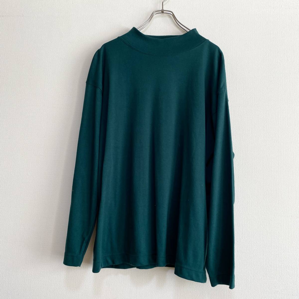 - アメリカ古着 デッドストック モックネック ハイネック 長袖 Tシャツ ロンT グリーン レディース 【P444】