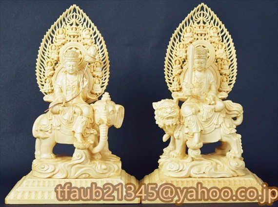 - 文殊菩薩 普賢菩薩 木彫り 仏像 フィギュア 文殊菩薩像 普賢菩薩像 座像 仏教美術 置物 セット