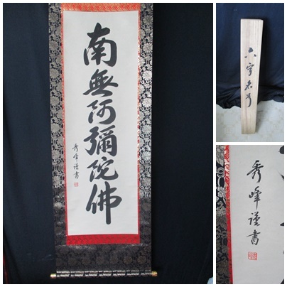 - ◆掛軸 六字名号 小笠原秀峰 縦188㎝ 横54.5㎝ ※所々、シミあり tm2309-28-3