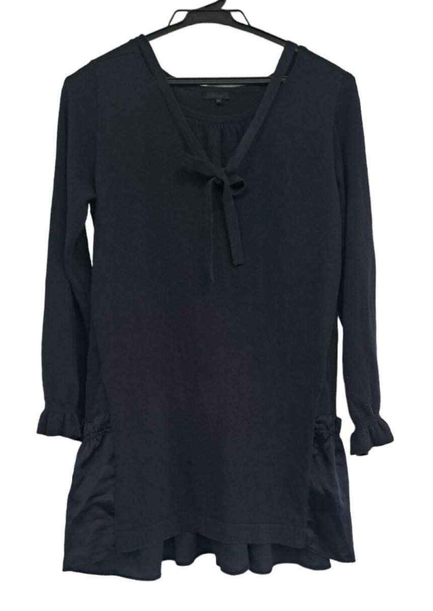 > TO BE CHIC トゥービーシック トップス 長袖 チュニック 紺 異素材 ネイビー 40 レディース リボン 【中古】