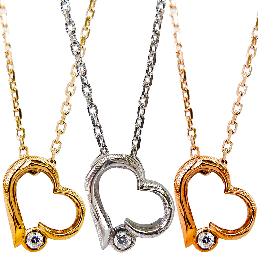 > ★インスタ映え★SNS★ハワイアンジュエリー★アレルギー&温泉&海水浴ご使用OK★ステンレスペンダント★ハート&ジルコニア&波スクロール★
