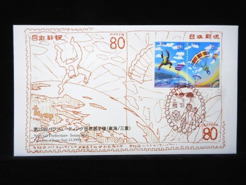 - ふるさと切手 第25回パラシューティング世界選手権 2種連刷 2000年9月13日 鳥羽 初日カバー FDC 日本切手 M-825