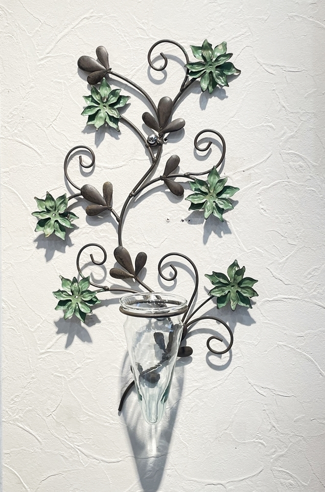 - ★新品 フラワーベース 壁掛 花瓶 ウォールデコ アイアン ガラス インテリア アンティーク調 壁 飾り おしゃれ ディスプレイ M100202
