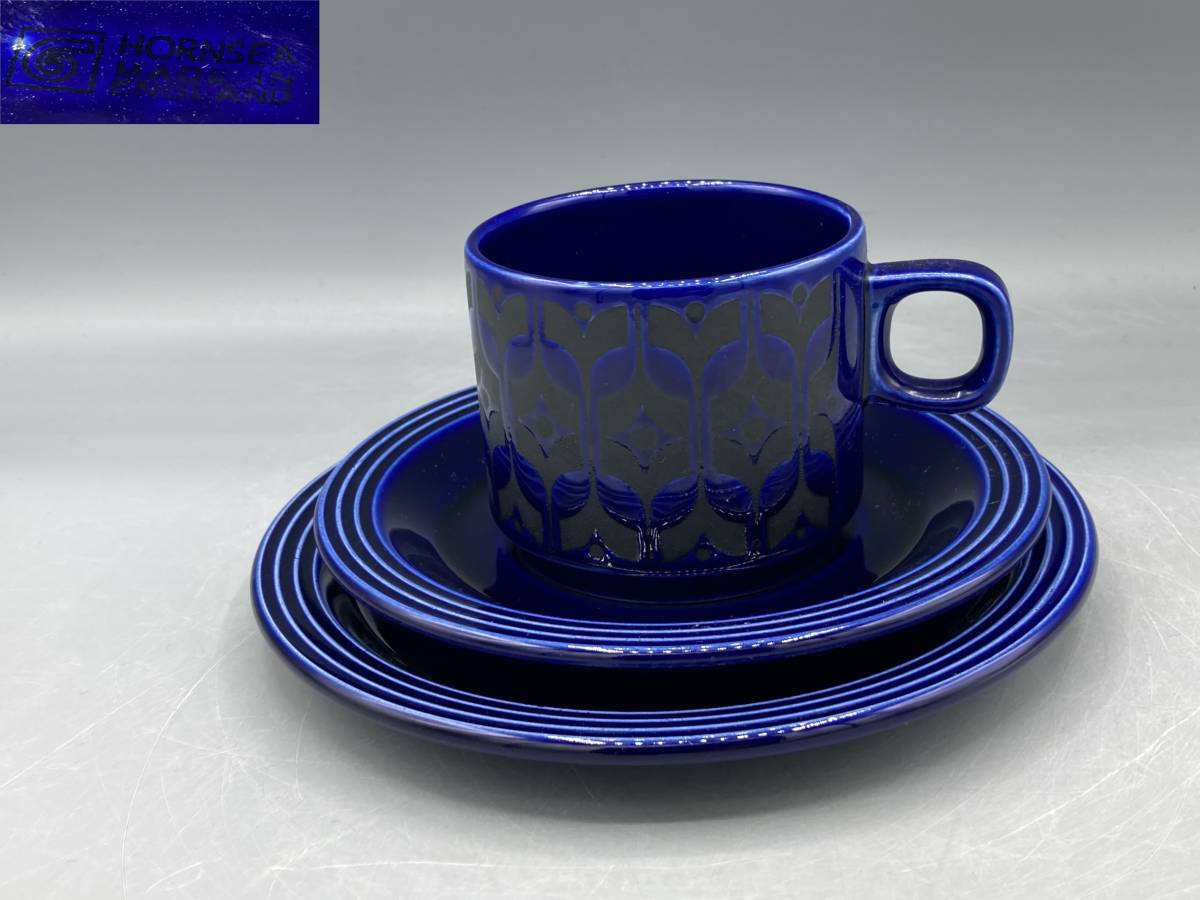 - 希少 ホーンジー ヘアルーム ブルー カップ&ソーサ ケーキ皿 トリオ (781)) レア * カップアンドソーサー