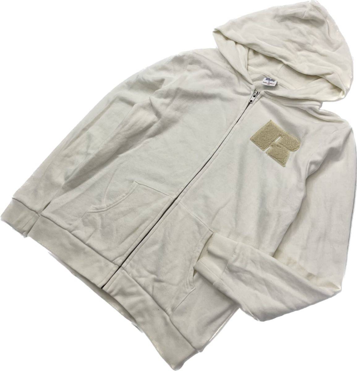 > RUSSEL ☆ ライトウェイト スウェット ジップアップ パーカー ホワイト レディース L スポーツ ストリート アメカジ 古着 ラッセル■BM25