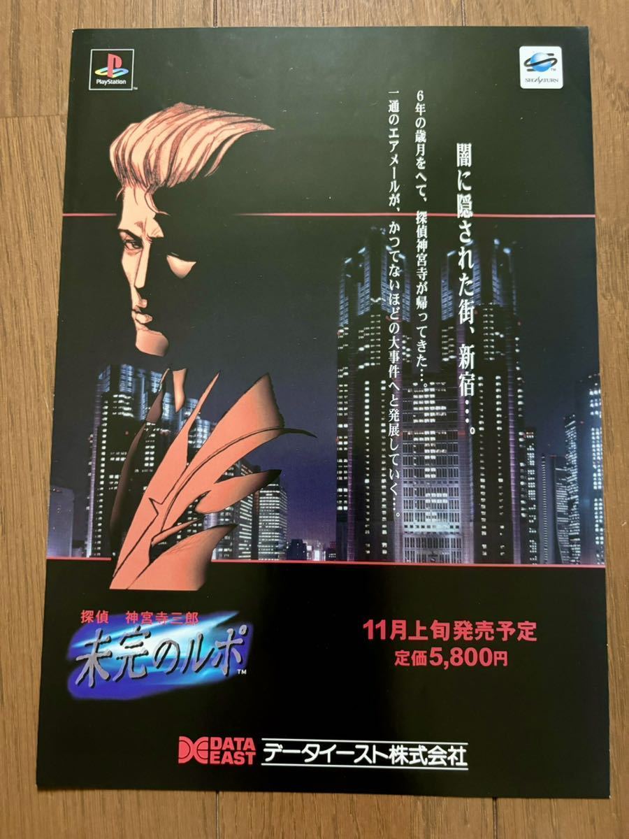> チラシ 探偵 神宮寺三郎 未完のルポ セガサターン プレイステーション ゲーム カタログ パンフレット SEGA データイースト DATAEAST