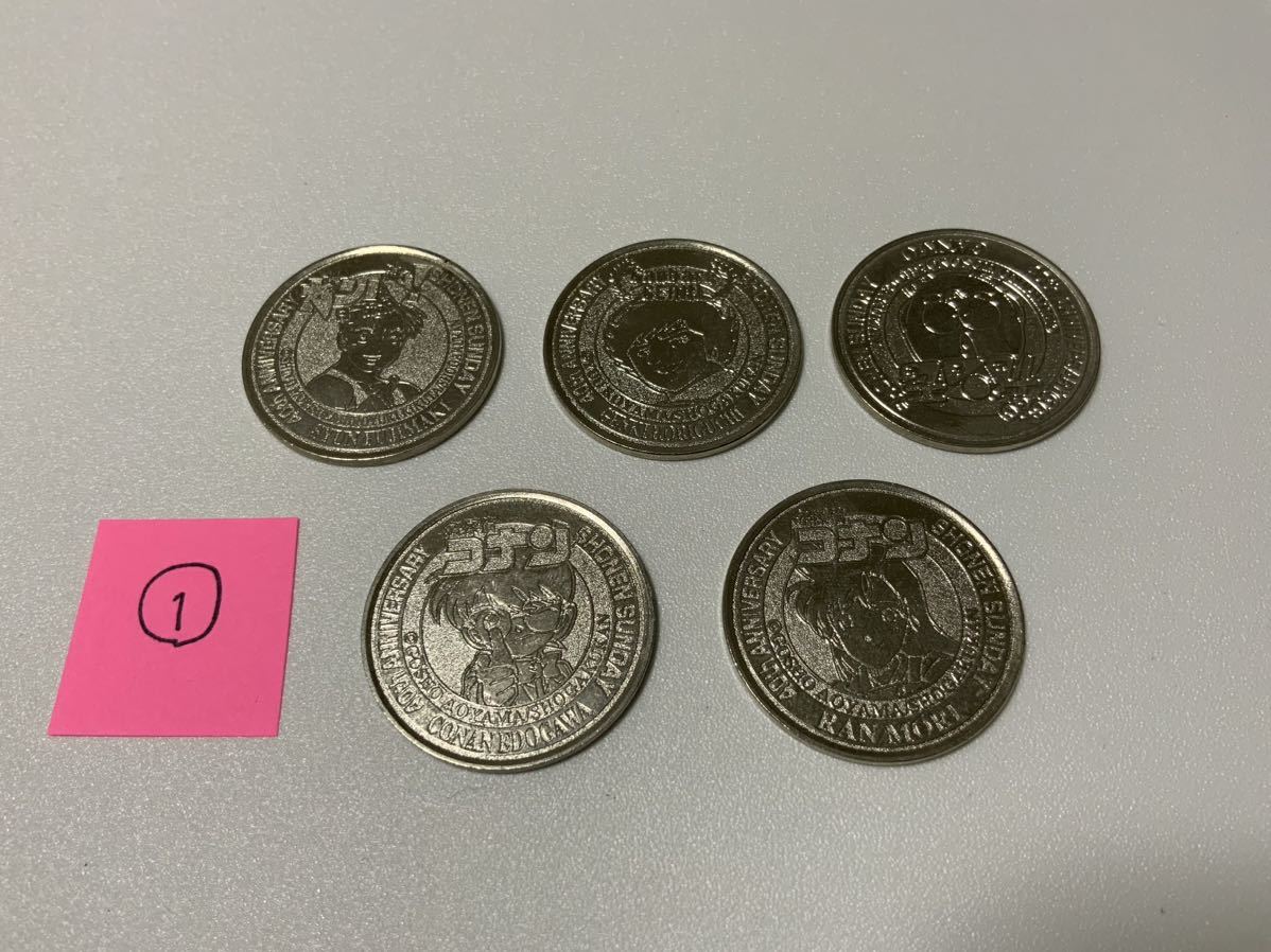 - 週間少年サンデー 40th アニバーサリー 記念メダル 名探偵コナン 毛利蘭 ガンバ!Fly high がんばれ元気 GU-GU-ガンモ 昭和レトロ 当時物