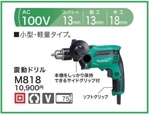 - マキタ 100V 振動ドリル M818 [小型&軽量]■安心のマキタ純正/新品/未使用■